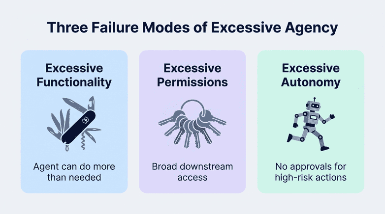Agency becomes dangerous when AI systems get too many permissions, too many tools, or too much autonomy.