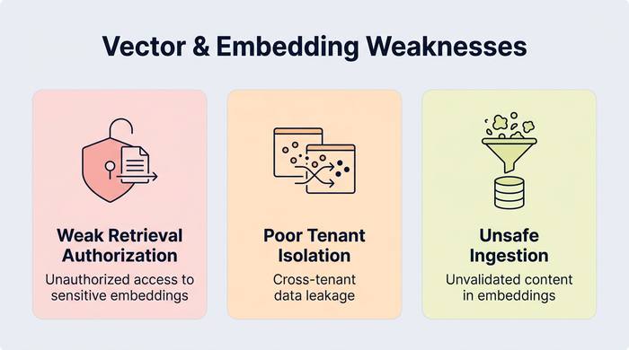 RAG systems add a new data access layer: vector stores. Misconfiguration here can leak sensitive data across users or tenants.