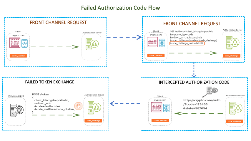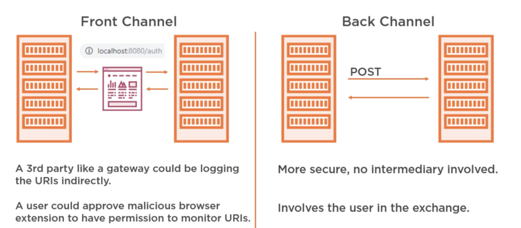 Generally in a server‑side web application, authorization code is acquired by passing through the user’s browser. This is known as a front‑channel request. Once the client received the authorization code, it exchanged it for an access token, this time going via the back channel, directly to the authorization server via a POST request, providing an authorization code along with its clients secret to authenticate itself. Now, this is a problem for public clients, like single‑page applications or your native applications as there is no way to securely store the client’s secret. The code runs in the browser or the mobile device, so anyone can view it. Additionally, for JavaScript applications, until recently, cross‑origin requests were blocked by many browsers. And since the authorization server was on a different domain than the application, it was not always possible to make a back‑channel request. Now to get around this, the implicit flow was created. It removed the authorization code and simply sent the access token via the front channel to the clients. The implicit flow is not as secure as the authorization code flow because the access token is being sent using the redirect via the browser. Basically, it’s using the browser’s address bar. Hence, there are more ways to intercept it than when going directly to the authorization channel via the back channel using a POST request, such as a third party, like a gateway could be logging the URIs indirectly. A user could approve a malicious browser extension to have permission to monitor URIs. Also, if you signed into Chrome, your browser history is synced with Google so they will have your browser history and hence will have your access tokens. Now this is not a concern for the authorization code as it’s useless without the client’s secret, which is why the OAuth working group no longer recommends the implicit flow for public clients, mainly because cross‑origin resource sharing is now universally adopted by most browsers. So the authorization code flow with proof of key exchange is now a viable method and is recommended. Next, let’s look at how the proof of key exchange addresses the shortcomings of the implicit flow.